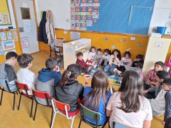¡Hoy el aula de 5 años ha vuelto a cobrar vida! El alumnado de 4º de Primaria ha vuelto a convertirse en cuentacuentos por un día para visitar a los peques de 5 años. 📖✨